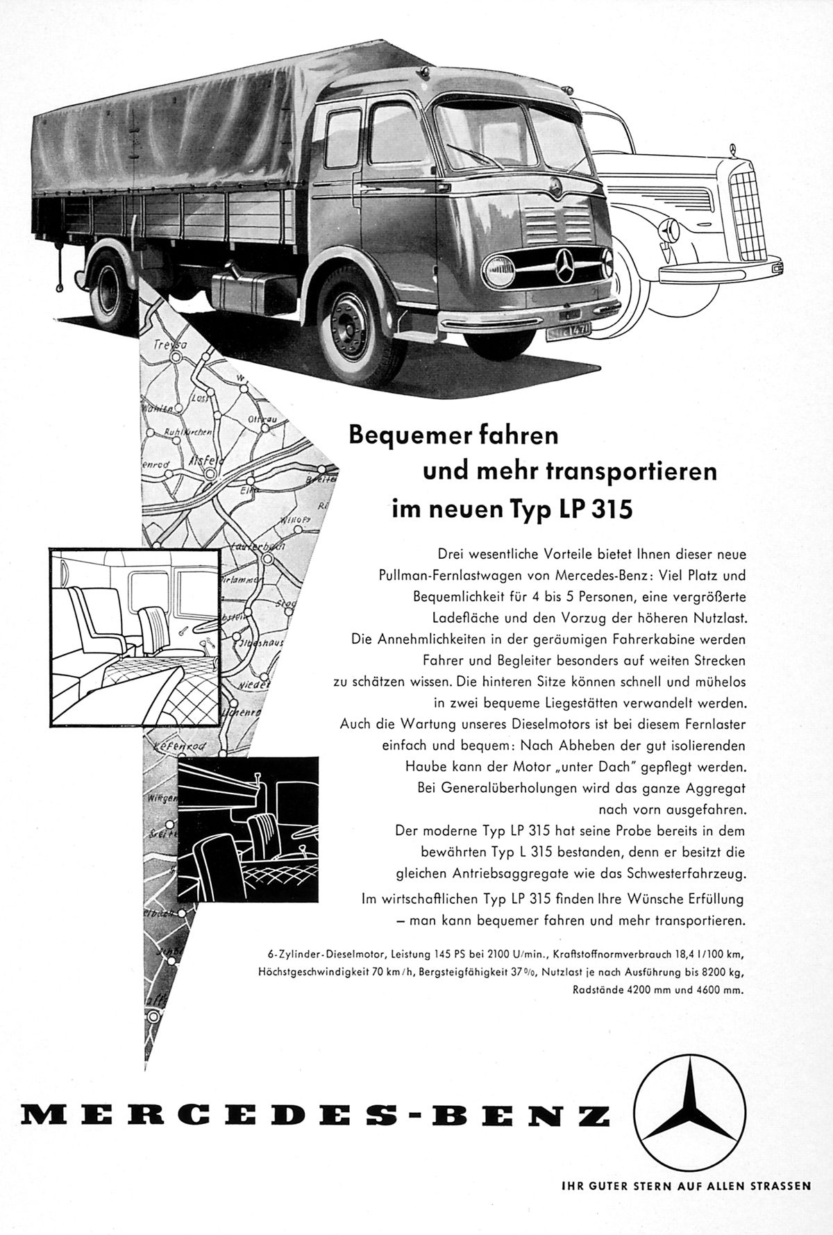 En transportes de larga distancia en particular, el LP 315 convenció a clientes, incluidos aquellos en el mercado alemán, desde un comienzo. La abreviación LP fue utilizada por Mercedes-Benz durante varios años para nombrar a modelos de camión con cabina sobre el motor.