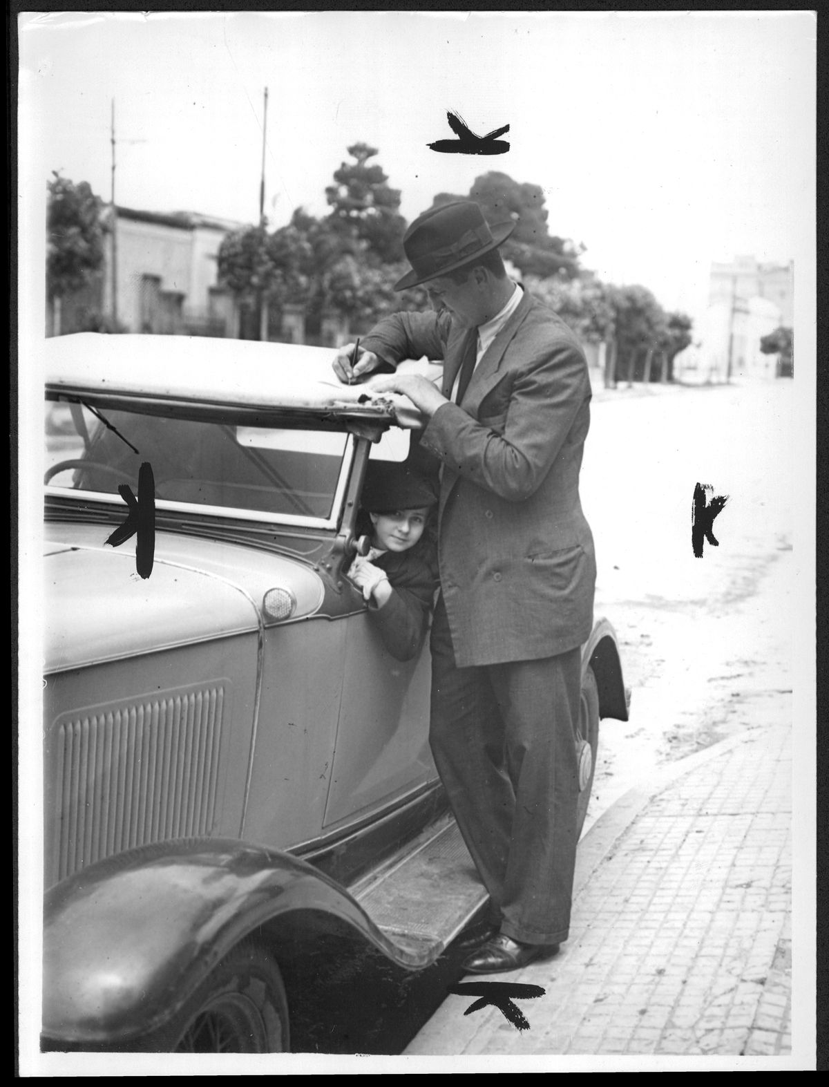 Aparentemente es un Chevrolet Roadster 1930, notese la insignia en la taza trasera y la forma del radiador con la insignia ademas de los faroles de posición del Chrevrolet de esa época.