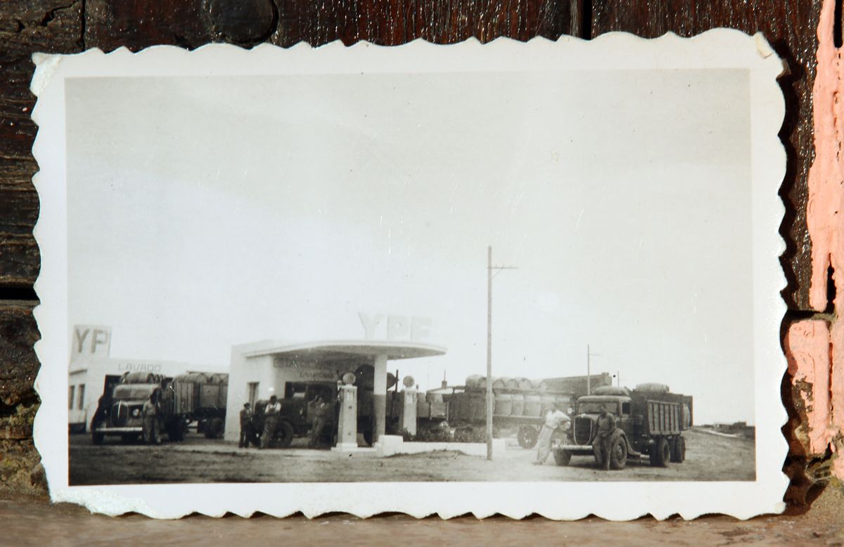 Pero volvamos a la tarde decembrina en Indio Rico. Al rato de hacerle fotos a la estación, con la anuencia y disposición de su empleado, llegó su propietario desde hace unas cuantas décadas y también me hizo la recorrida por el pueblo en su camioneta, con escala frente a su casa, para fotografiar la única imagen antigua de su estación, cuando aún estaba en manos de sus primeros e inmediatamente anteriores propietarios.