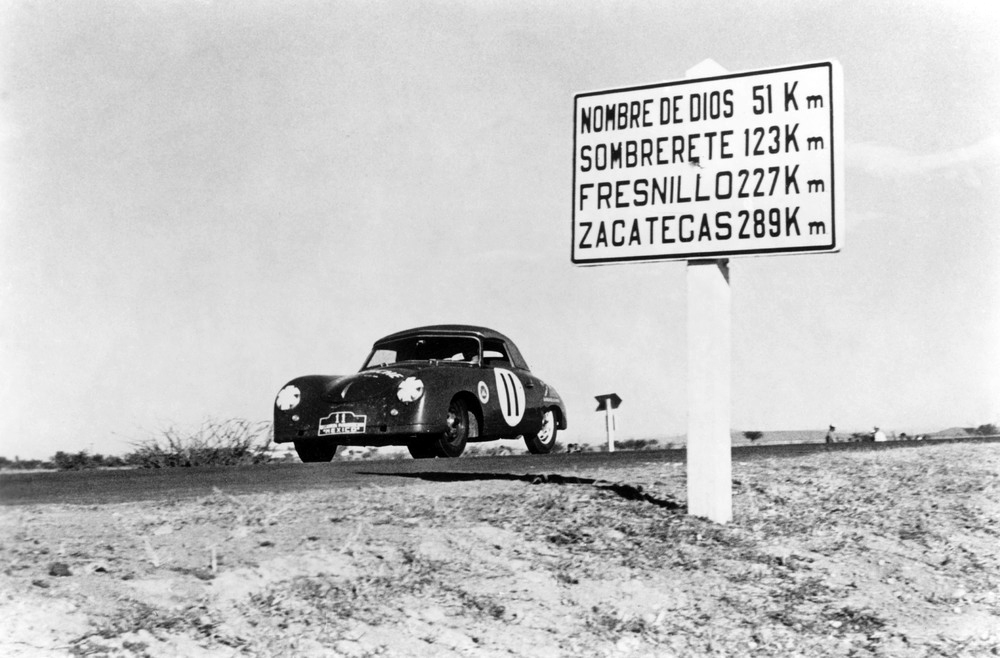 Competir en la Carrera Panamericana fue una aventura muy especial. Esta prueba de ruta no necesitó más de cinco ediciones (de 1950 a 1954) para convertirse en una leyenda del automovilismo y fue prohibida debido a su alto riesgo. Desde 1952 Porsche participó en este brutal desafío. Y la inspiración en aquellos eventos mexicanos todavía perdura: Ferry Porsche denominó a todos los deportivos que tenían los motores ganadores de cuatro árboles de levas con el nombre «Carrera». La Carrera Panamericana también inspiró a Porsche para el nombre del Gran Turismo de cuatro puertas Panamera, que se produce desde 2009.